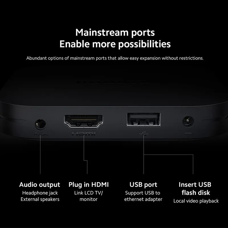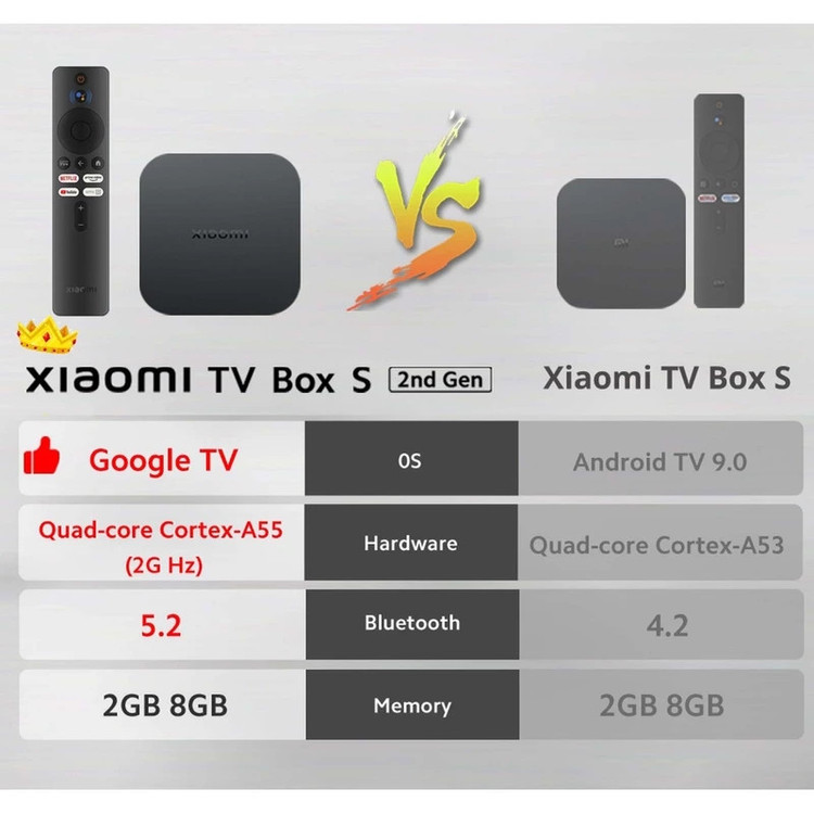 جدیدترین اندروید باکس شیائومی مدل Mi box s 2nd gen MDZ-28-AA دارای خروجی کیفیت تصویری بسیار بالاتر از ورژن قبلی میباشد و قادر است محتوا را باکیفیت 4k با60 فریم در ثانیه تولید کند.اندروید باکس شیائومی ورژن 2 دارای طراحی بسیار شیک و جذابی است که هنگام قرار گیری بر روی میز تلویزیون شما به هیچ عنوان فضای زیادی اشغال نمیکند و همچنین به دلیل طراحی زیبایش دکور خوبی نیز به میز شما میبخشد.این محصول در ابعاد 92.25x92.25x16.7 میلیمتر تولید شده است و وزنی برابر با 147 گرم دارد که نسبت به کارایی اش این وزن بسیار پایین است . جنس بدنه این محصول از پلاستیک بسیار با کیفیت ولی مات است که به زیبایی محصول افزوده است . در قسمت پشتی این محصول تعدادی درگاه مشاهده میکنیم که این درگاه ها عبارتند از یک پورت برای تغذیه دستگاه ، پورت دیگر ورودی USB است که میتوان حافظه های جانبی یا اکسسوری هایی مانند ماوس و کیبورد به آن متصل کرد و اما پورت دیگر HDMI میباشد که این پورت خروجی دستگاه است و پورت دیگر که جک 3.5 میلیمتری است مختص به خروجی صدای دستگاه است.اگر از بحث طراحی خارج شویم و به پردازنده این محصول بپردازیم باید بگوییم که این محصول دارای یک پردازنده 4 هسته ای است که هسته های آن از پردازنده Cortex A55 که با توجه به این موضوع میتوان توقع بسیار بالایی از این پردازنده داشته باشیم در کنار این پردازنده قوی 8 گیگ رام و 2 گیگ رم نیز به پردازش کمک بسزایی میکند.گرافیک قدرتمند نیز تصاویر بسیار روانی برای شما به رخ خواهد کشید.در گام استفاده از این دستگاه میتوانید از طریق وای فای موجود در دستگاه به اینترنت متصل شوید و همچنین با پشتیبانی از Google TV شما را از مزایای یک تلویزیون هوشمند با قیمت مناسب بهرهمند میکند نکته قابل توجه دیگر این است که با کروم کست داخلی قادر خواهید بود که نمایشگر موبایل خود را به صفحه تلویزیون انتقال دهید.اما امکانات این دستگاه همینجا ختم پیدا نمیکند بلکه مشخصههای دیگر نظیر DTS-HD، Dolby Audio ، Dolby Vision و HDR10+، تجربه بصری خوبی بر جای خواهد گذاشت. این در حالی است که در نسخه قبلی این اندروید باکس پشتیبانی از Dolby Vision و HDR10+ دیده نمیشد. کنترل این دستگاه یک کنترل همه چی تمام مجهز به میکروفون برای انجام فرامین صوتی با طراحی زیبا که دارای مادون قرمز و بلوتوث 360 درجه است.