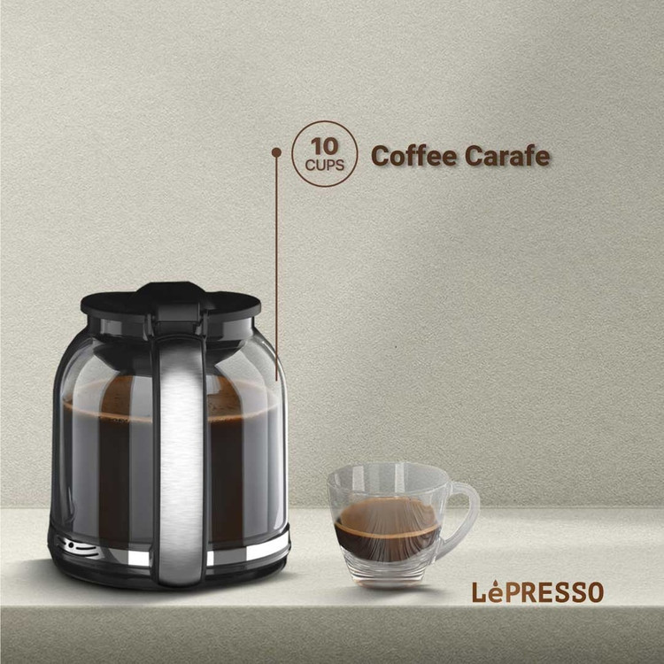 روز خود را به طور ایده آل با قهوه و اسپرسو LePresso Dual Brew Drip در مشکی شیک شروع کنید. این قهوه ساز همه کاره، راحتی قهوه قطره ای را با غنای اسپرسو برای یک تجربه کامل دم کردن قهوه ترکیب می کند. این دستگاه مجهز به ولتاژ نامی 220-240 ولت، فرکانس نامی 50-60 هرتز و توان نامی 1690-2015 وات است، این دستگاه نوید عملکرد ثابت و پایدار را می دهد و تمام نیازهای دم کردن شما را برآورده می کند. در عین حال قادر خواهد بود قهوه شما را در دمای ایده آل 82 تا 88 درجه سانتیگراد گرم و سرشار از رضایت نگه دارد. LePresso Dual Brew، با سیستم فشار 20 بار، حداکثر طعم و عطر را از تفاله های قهوه شما برای طعمی پررنگ و با اندام بیان می کند. کافه قهوه 10 فنجانی به شما این امکان را می دهد که برای خود، خانواده یا حتی میهمانان برای شرکت کامل، چه از نظر شخصی یا اجتماعی، به اندازه کافی دم کنید. فنجان قهوه عالی را با ویژگی شدت متغیر قهوه دم کنید تا بتوانید قدرت قهوه خود را سفارشی کنید. علاوه بر این، یک فیلتر نایلونی قابل شستشو باعث میشود که تعمیر و نگهداری آسان باشد و فرآیند دمآوری را برای کیفیت بهتر قهوه تمیز نگه میدارد. با صفحه نمایش ال سی دی بصری خود، نظارت و تغییرات در فرآیند دم کردن همیشه از نظر بصری در دسترس شماست. عملکرد Keep Warm حفظ دمای مناسب به مدت 2 ساعت است. این دستگاه مجهز به دوشاخه 3 پین انگلستان است تا بتوانید آن را در خانه یا محیط اداری کار کنید.