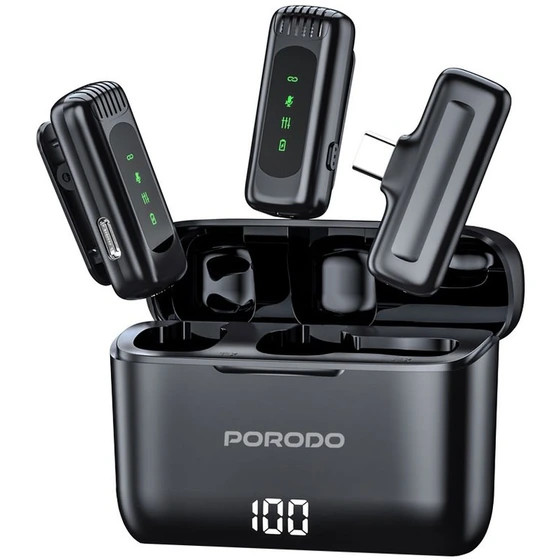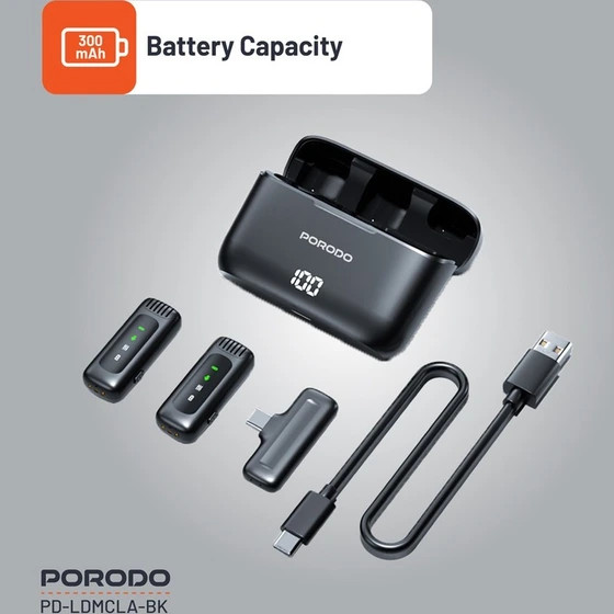 میکروفون بی سیم پرودو 2 فرستنده Porodo Lavalier Microphone PD-LDMCLA