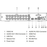دستگاه DH-XVR5116HS-I3 دارای ۱۶ پورت ورودی تصویر (BNC) و ۱ عدد ورودی و ۱ عدد خروجی صدا (AV)