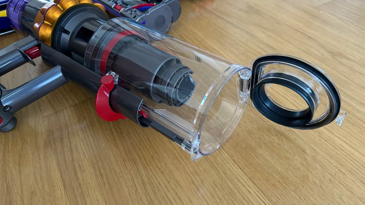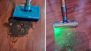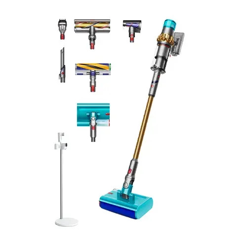 کف های سخت را جاروشارژی v15s Submarine Dyson از ابتدا تا انتها با آب تمیز شستشو می دهد